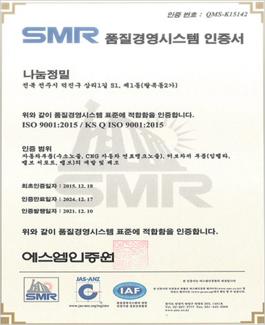 ISO 9001/2015 KS Q ISO 9001:2015 인증