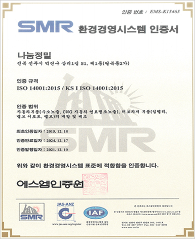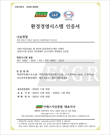 ISO 14001:2015 KS I ISO14001:2015 인증