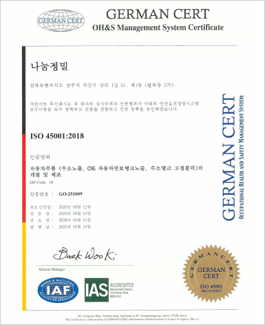 주 생산품 . ㈜ 일진하이솔루스 CNG 노즐보스 가공